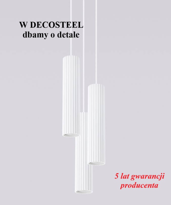 Potrójna lampa wisząca biała tuby sufitowe ryflowane KARBON 3P