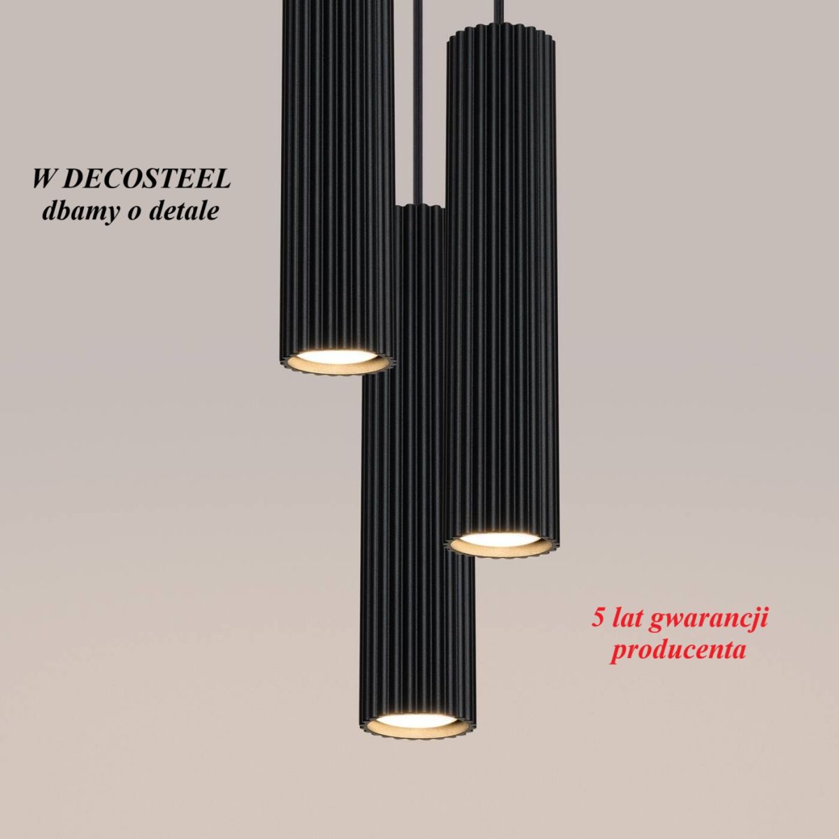 Lampa wisząca tuby sufitowe potrójne czarne o wyjątkowej ryflowanej strukturze, idealna do aranżacji w nowoczesnych przestrzeniach. Unikatowa lampa o ryflowanej strukturze, czarne tuby sufitowe wiszące potrójne - lampa nad okrągły stół, lampa do sypialni urządzonej z wyjątkowym poczuciem estetyki. Nowoczesna lampa wisząca do salonu w designerskim stylu! Lampa wisząca czarna doskonale wkomponuje się w większość eleganckich pomieszczeń. Więcej lamp - może Twoja wymarzona lampa wisząca czeka na Ciebie w naszym nowym sklepie: https://www.lampami.pl